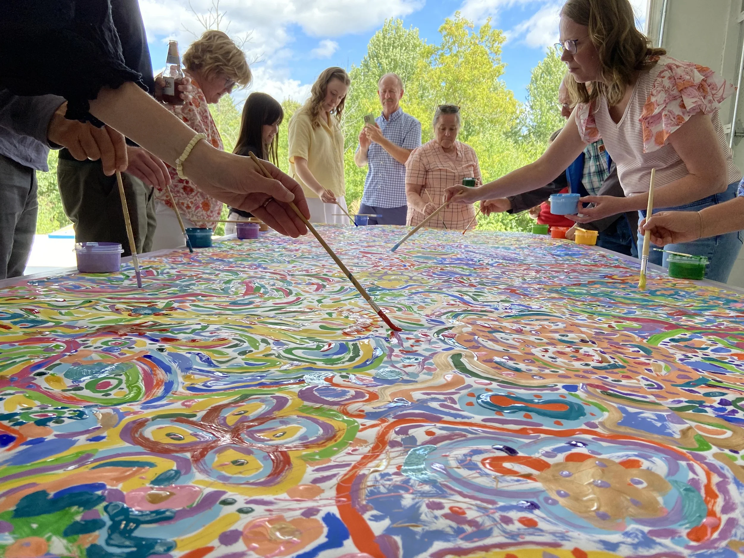This body of work explores how our perception of the world, and our relationships can be depicted through painting a new world together. Our Art for a Burning World: A Genesis+Art Exhibition is composed of both Communal Group Paintings from our workshops and our Collaborative Paintings.